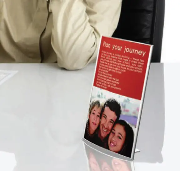- Events & Exhibitions: Display agendas, booth info, or instructions on desks.