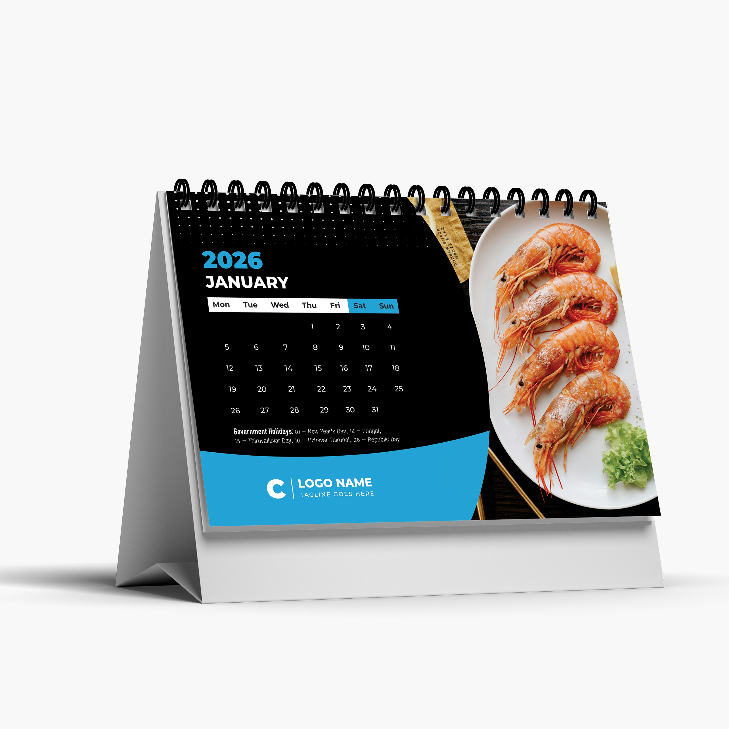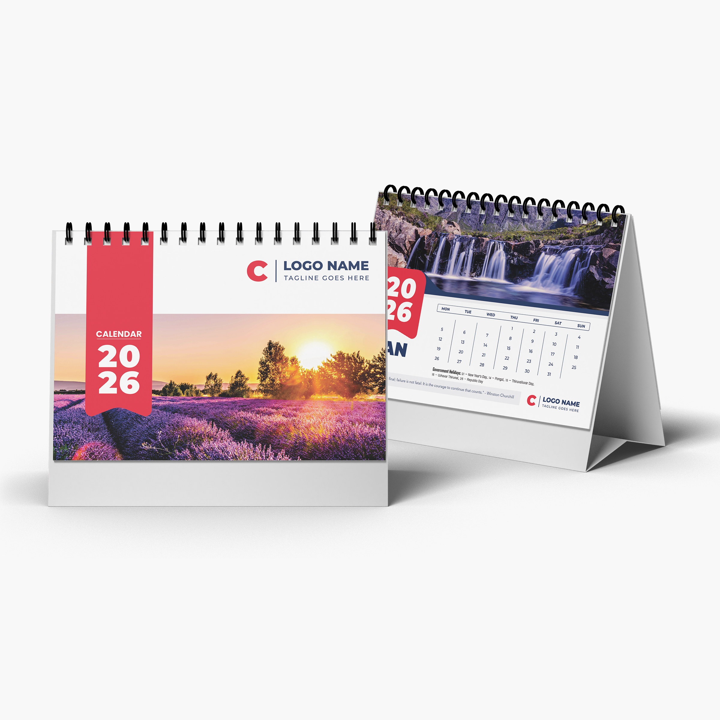 Purchase customized table top calendars with your company logo & branding. Choose either 7-page & 13-leaf design styles, premium matte or soft suede lamination. Great for corporate gifts & desk use. Limited time seasonal offers available now!